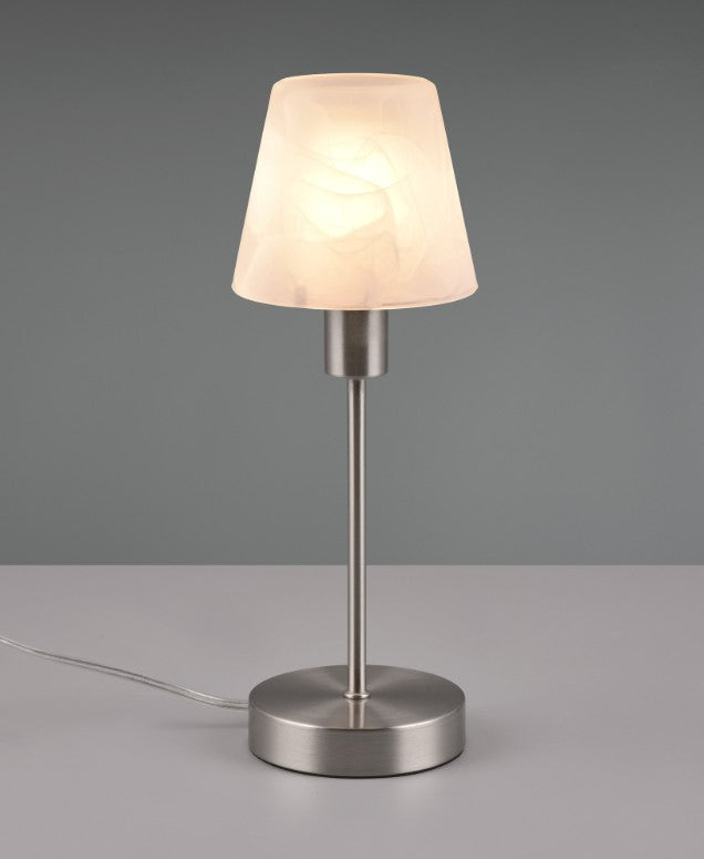 Dê um toque de estilo à iluminação com o candeeiro de mesa LUIS II. Equipado com uma função tátil, pode ligar e desligar a luz através do toque. O candeeiro de mesa fica muito bem numa mesa ou cómoda na sua sala de estar, escritório ou corredor. O design claro e discreto é composto por uma base em níquel mate e um abajur elegante em branco apagado.