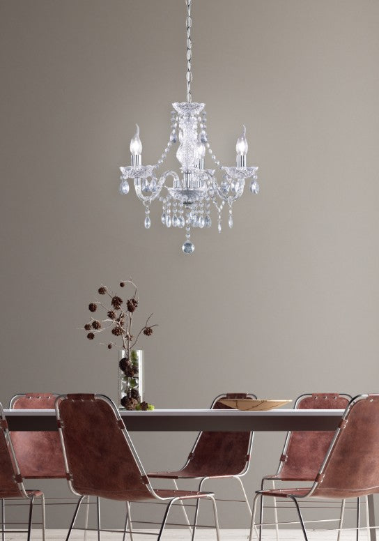 O lustre cintilante LÜSTER atrai a atenção de todos. Este lustre glamoroso enquadra-se perfeitamente em estilos de decoração modernos e clássicos e impressiona pelo seu design de bom gosto e condições de iluminação de primeira classe. A luminária de 3 chamas tem uma suspensão de 150 cm e um diâmetro de 46 cm. O esquema de cores em metal cromado e o abajur em cristal acrílico transparente complementam-se na perfeição e criam um aspeto geral harmonioso. Para uma iluminação economizadora de energia, recomenda-se a utilização de uma lâmpada LED. Estas são uma óptima alternativa às lâmpadas de halogéneo convencionais e representam uma elevada qualidade de luz e uma poupança de energia de até 80%. Além disso, as lâmpadas LED ajudam-no a beneficiar de uma longa vida útil, de uma baixa produção de calor e, ao mesmo tempo, protegem o ambiente.