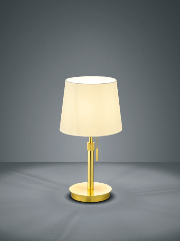 Simples, elegante e orientado para o design. O candeeiro de mesa LYON de alta qualidade impressiona pelo seu estilo moderno e design direto. O candeeiro de mesa evoca um ambiente de iluminação agradável e, ao mesmo tempo, é incrivelmente decorativo. A altura do candeeiro pode ser regulada entre 45 e 56,5 cm, o que torna a sua utilização e posicionamento incrivelmente flexíveis. Quer seja como candeeiro de cabeceira no quarto, numa cómoda ou numa mesa de apoio na sala de estar, o candeeiro é também uma verdadeira peça de joalharia durante o dia. A combinação de latão escovado e brilhante é complementada por um abajur em tecido branco, criando um visual sofisticado.