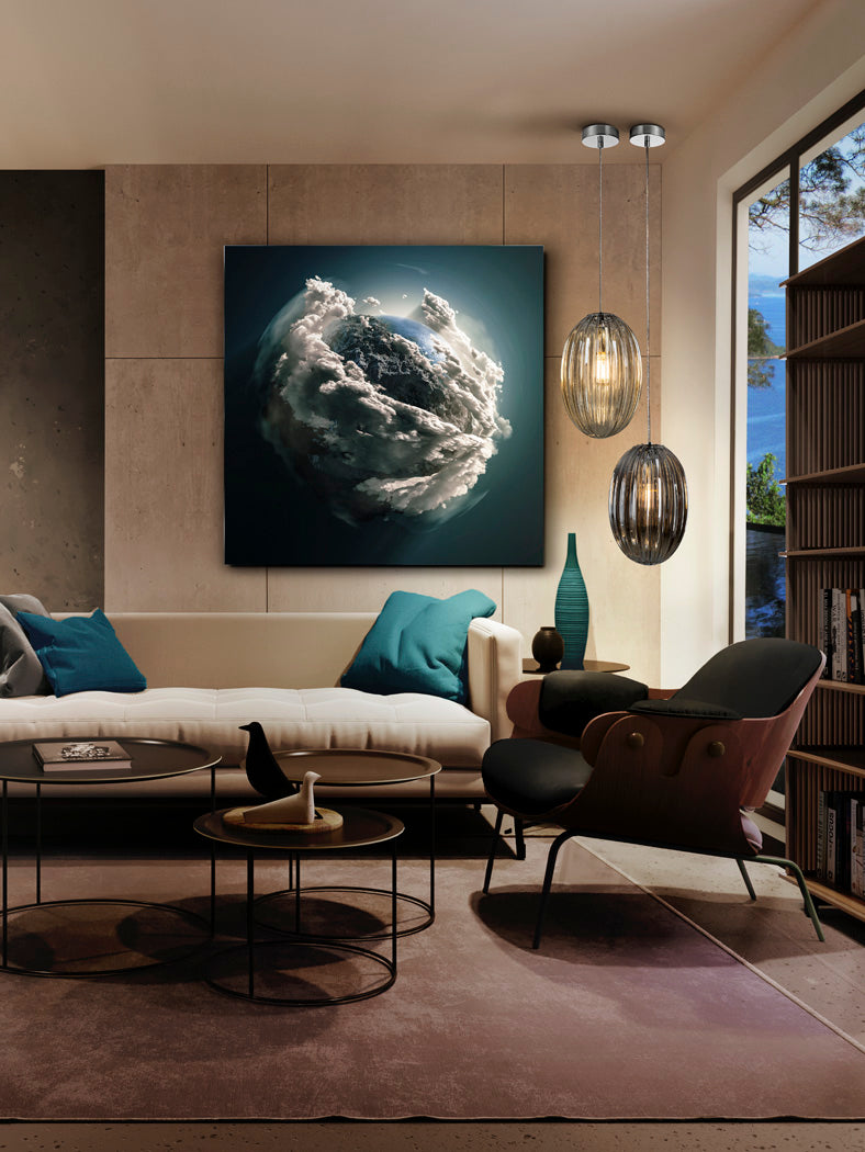 Fotografia impressa, montada em vidro temperado. Inclui ferragem para fixação à parede.