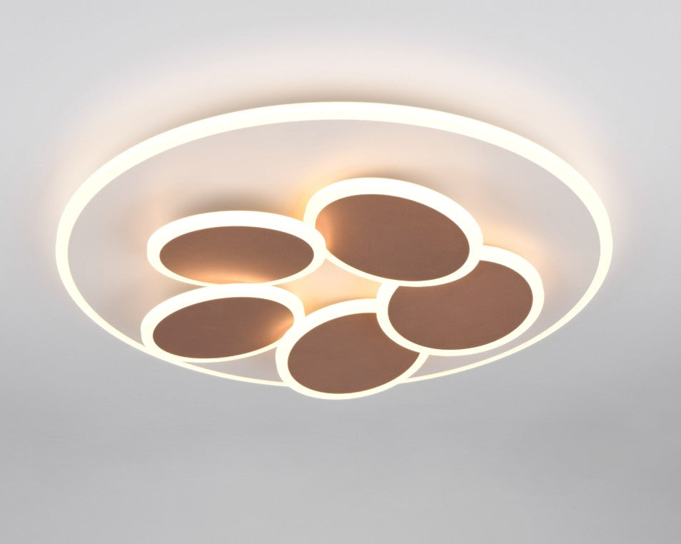 O candeeiro de teto MANDALA é uma verdadeira obra de arte! As cinco pequenas áreas circulares iluminadas e o anel exterior iluminado conferem a esta obra de arte uma agradável profundidade e um impressionante efeito A combinação moderna das cores cinzento quente e café sublinha o design especial e elegante da luminária.