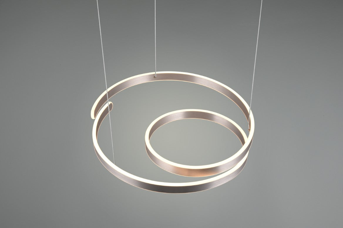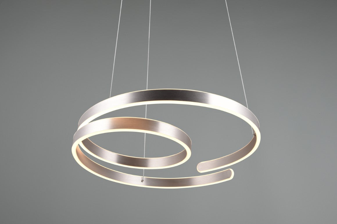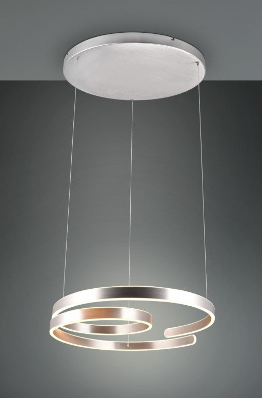 O candeeiro suspenso MARNIE brinca com a sua forma curva e faz uma afirmação forte. A luminária em forma de espiral é mais eficaz na sala de jantar, por cima de uma mesa. A iluminação indireta enriquece a sua sala de estar com um ambiente luminoso agradável. Graças ao regulador de intensidade SWITCH, a luz pode ser regulada por fases (100%, 50% e 25%) utilizando um interrutor de luz convencional. Faça da sua sala de jantar o centro da sala! A linguagem de design especial e a cor de alumínio escovado dão um toque moderno ao seu interior.