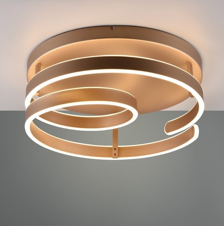 O candeeiro de teto MARNIE brinca com a sua forma curva e faz uma afirmação forte. A luminária em forma de espiral causa um grande impacto na sala de jantar ou na sala de estar por cima de uma mesa. A iluminação indireta enriquece a sua sala de estar com um ambiente luminoso agradável. Graças ao regulador de intensidade SWITCH, a luz pode ser regulada por fases (100%, 50% e 25%) utilizando um interrutor de luz convencional. Crie uma peça central especial na sua sala de estar! A linguagem de design especial e o esquema de cores em café dão um toque moderno ao seu interior.