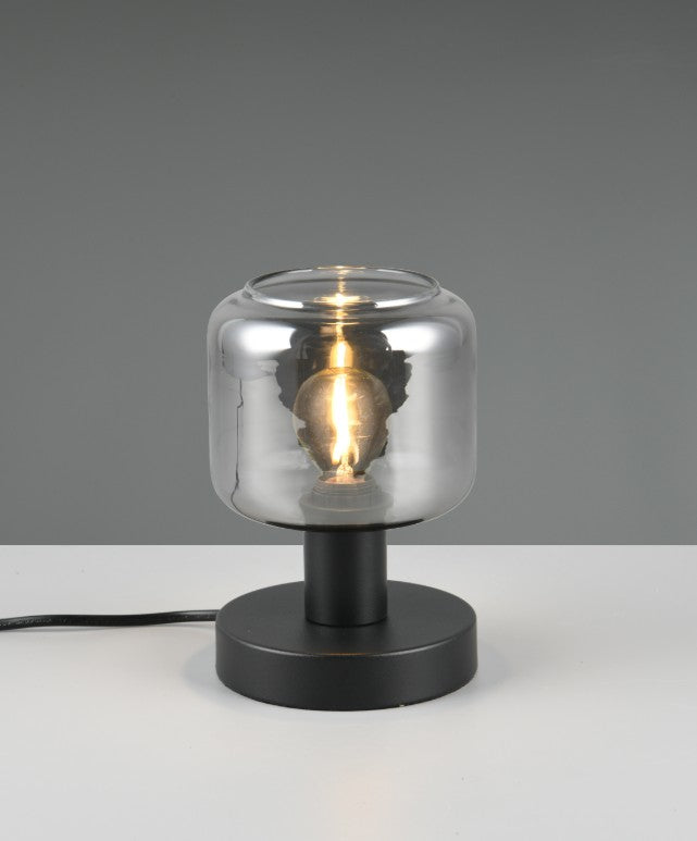 O candeeiro de mesa MATARO impressiona pelo seu design moderno e elegante. Seja numa cómoda ou numa mesa de cabeceira, atrai a atenção de todos com a sua extraordinária distribuição de luz e reflexos fascinantes. O metal é preto mate, enquanto o elemento de vidro é cromado, conferindo à luminária um brilho subtil e um ligeiro efeito espelhado.