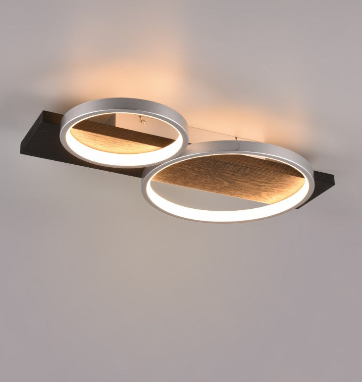 A luminária MEDERA tem um aspeto moderno e excitante. O design purista joga com formas geométricas, que são utilizadas para criar um efeito de iluminação agradável em toda a superfície. O jogo entre a luz indireta e a madeira convida-o a sonhar dentro das suas próprias quatro paredes. O regulador de intensidade SWITCH integrado permite igualmente regular a luminosidade em três níveis (100%, 50%, 25%) através de um interrutor de luz convencional. A montagem flexível no teto ou na parede permite muitas aplicações possíveis. O esquema de cores titânio, em combinação com a madeira natural preta, cria um toque moderno e acolhedor.