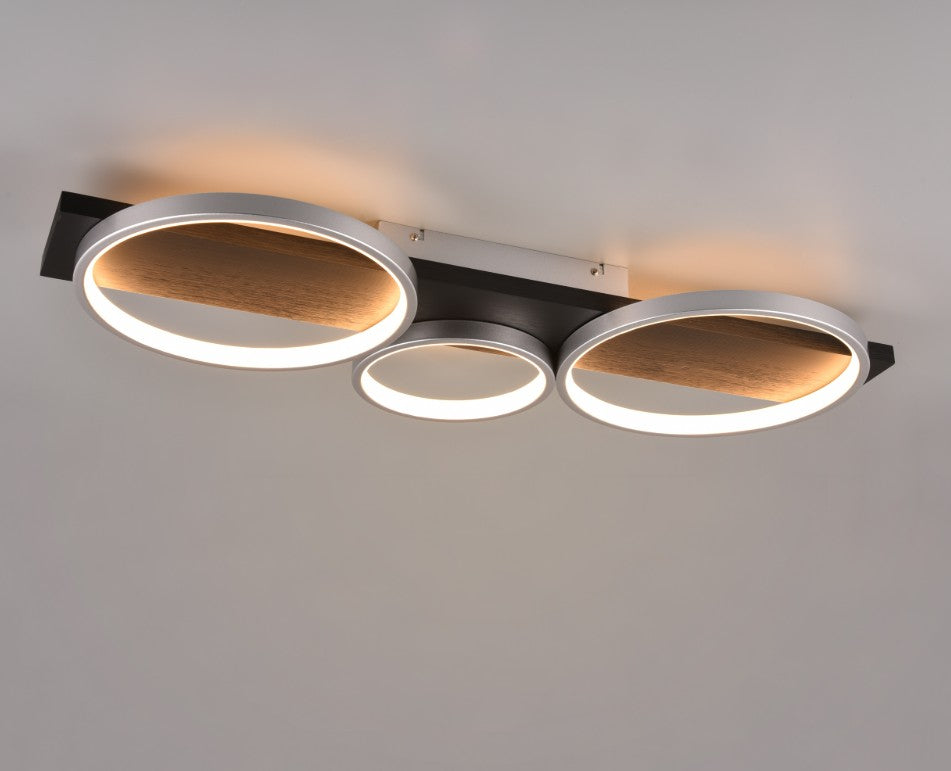 A luminária MEDERA tem um aspeto moderno e excitante. O design purista joga com formas geométricas, que são utilizadas para criar um efeito de iluminação agradável em toda a superfície. O jogo entre a luz indireta e a madeira convida-o a sonhar dentro das suas próprias quatro paredes. O regulador de intensidade SWITCH integrado permite igualmente regular a luminosidade em três níveis (100%, 50%, 25%) através de um interrutor de luz convencional. A montagem flexível no teto ou na parede permite muitas aplicações possíveis. O esquema de cores titânio, em combinação com a madeira natural preta, cria um toque moderno e acolhedor.