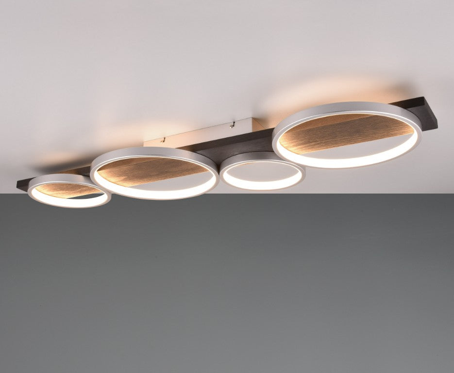 A luminária MEDERA tem um aspeto moderno e excitante. O design purista joga com formas geométricas, que são utilizadas para criar um efeito de iluminação agradável em toda a superfície. O jogo entre a luz indireta e a madeira convida-o a sonhar dentro das suas próprias quatro paredes. O regulador de intensidade SWITCH integrado permite igualmente regular a luminosidade em três níveis (100%, 50%, 25%) através de um interrutor de luz convencional. A montagem flexível no teto ou na parede permite muitas aplicações possíveis. O esquema de cores titânio, em combinação com a madeira natural preta, cria um toque moderno e acolhedor.