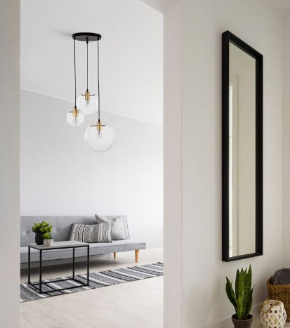 Material: Clear Glass & Gold Metal, Black PVC Wire