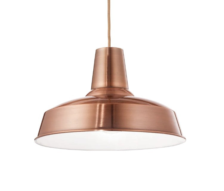 Estrutura metálica e difusor branco no interior. Acabamentos disponíveis: alumínio, branco, preto ou cobre. Ø 350 x H min 350 / max 1200 mm E27 máx. 1 x 42 W