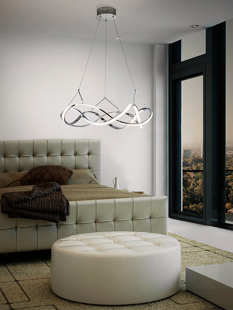 Candeeiro LED realizado em alumínio acabamento cromado. Regulável em altura. Difusores de material acrílico opalino. 30W LED, 2.700 lm, 3.000 K.