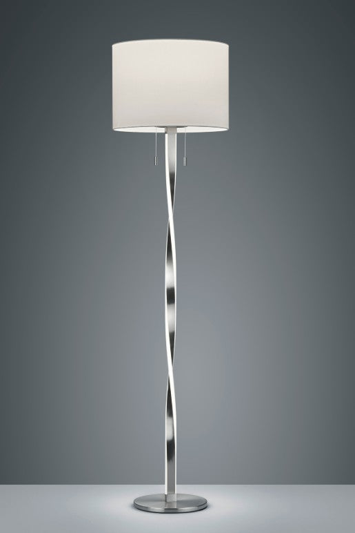 O candeeiro de pé NANDOR, com formas bonitas e cores coordenadas, integra-se perfeitamente em interiores modernos e clássicos. O elegante abajur em tecido é combinado com uma base de candeeiro curva para criar uma aparência geral harmoniosa. A base do candeeiro tem lâmpadas LED integradas e pode ser ligada separadamente do abajur com o casquilho E27. O candeeiro de pé com 160 cm de altura impressiona com o melhor resultado de iluminação possível para ler um livro e relaxar com os amigos ou como elemento decorativo na sua sala de estar. O abajur em tecido branco, juntamente com a base curva do candeeiro em níquel mate, criam uma combinação de cores moderna que parece intemporal e natural.