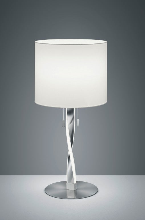 O candeeiro de mesa NANDOR, com formas bonitas e cores coordenadas, integra-se perfeitamente em interiores modernos e clássicos. O elegante abajur em tecido é combinado com uma base de candeeiro curva para criar um aspeto geral harmonioso. A base do candeeiro tem lâmpadas LED integradas e pode ser ligada separadamente do abajur com o casquilho E27. O NANDOR deve ser colocado de forma proeminente no interior, uma vez que a sua altura de 62 cm faz com que seja um destaque tanto ligado como desligado. O abajur em tecido branco, juntamente com a base curva do candeeiro em níquel mate, criam uma combinação de cores moderna que parece intemporal e natural.