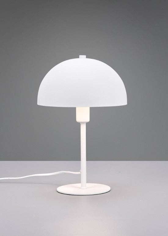 O candeeiro de mesa NOLA tem uma forma purista e de inspiração clássica que não deixará de impressionar. O design moderno em forma de cogumelo integra-se perfeitamente no seu interior e cria harmonia no seu espaço de vida numa cómoda ou mesa de cabeceira. A luz também pode ser facilmente ligada e desligada através de um interrutor com fio. Graças ao seu design moderno em branco mate e à sua versatilidade, o candeeiro pode ser utilizado em qualquer parte da casa.