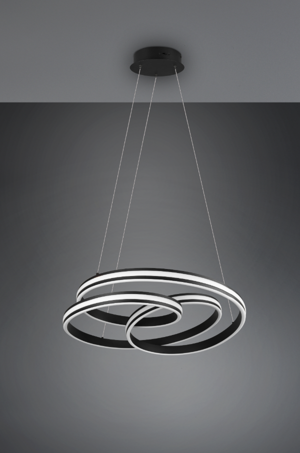 As formas curvas constituem a base da luminária NURIA. O design harmonioso e o perfil extra largo fazem da luminária pendente um objeto de iluminação especial com funções adicionais práticas. Três cores de luz (quente, neutro, branco luz do dia) podem ser definidas na cobertura através de DIP-SWITCH. A luminosidade também pode ser regulada em 3 níveis através do interrutor de luz convencional. Graças ao design em preto mate, a luminária pode ser combinada com muitos conceitos de mobiliário. Além disso, a luminária possui a moderna tecnologia LED, que se caracteriza por uma elevada qualidade de luz e eficiência energética. Em comparação com as lâmpadas de halogéneo convencionais, é possível poupar até 80% dos custos de energia. Além disso, as fontes de luz LED têm uma longa vida útil, produzem menos calor e protegem o ambiente.