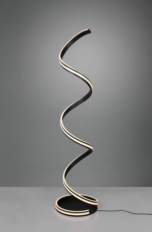As formas curvas constituem a base da luminária NURIA. O design harmonioso e o perfil largo fazem do candeeiro de pé um objeto de iluminação especial com funções adicionais práticas. A luminária pode ser regulada para três cores de luz (quente, neutro, branco luz do dia) e a luminosidade pode ser continuamente ajustada através de um interrutor de pé. Graças ao design em preto mate, a luminária pode ser combinada com muitos conceitos de mobiliário.