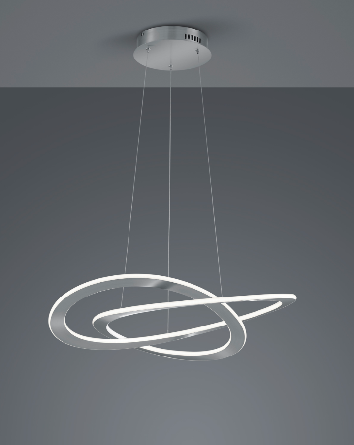 Com o seu design moderno e invulgar, a luminária suspensa OAKLAND cria um atrativo impressionante no seu espaço de vida. Os candeeiros suspensos são ideais para iluminar áreas específicas com um efeito ótimo. Colocado no centro, por cima da mesa de jantar, o candeeiro suspenso ganha vida própria e convida-o a conviver com os amigos ou a desfrutar de uma refeição acolhedora. A luz também impressiona pelas suas práticas funções adicionais. O regulador de intensidade SWITCH integrado permite-lhe escolher entre três níveis de luminosidade diferentes utilizando um interrutor de luz convencional. Ao graduar a intensidade da luz de 100% para 50% e 25%, a luz pode ser utilizada para criar diferentes ambientes de iluminação. A luminária tem uma altura de 150 cm e um diâmetro de 70 cm. O acabamento em níquel mate confere à luminária pendente um design moderno que pode ser encontrado em vários estilos de mobiliário. Além disso, a luminária possui a moderna tecnologia LED, que se caracteriza por uma elevada qualidade de luz e eficiência energética. Em comparação com as lâmpadas de halogéneo convencionais, é possível poupar até 80% dos custos de energia. Além disso, as fontes de luz LED têm uma longa vida útil, produzem menos calor e protegem o ambiente.