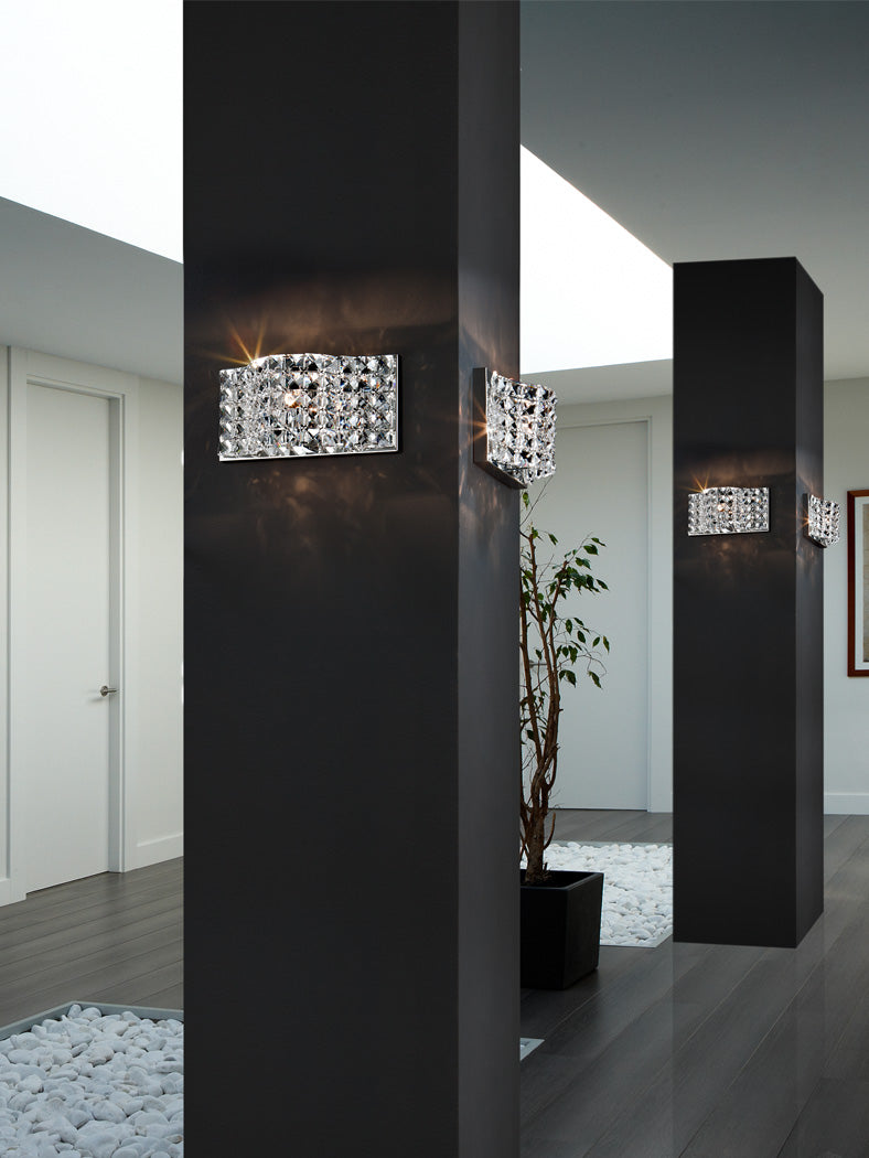 Aplique realizado em metal cromado e malha de vidros facetados K9. 1 G9