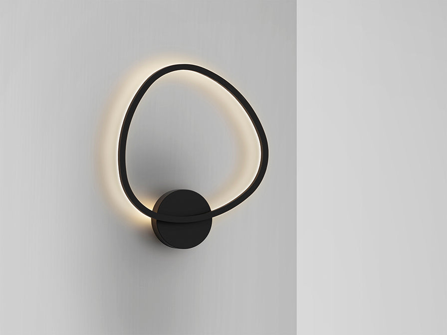 Candeeiro de parede, realizado em alumínio acabamento preto. Difusor acrílico opalino. 27W LED, 1.396 lm. 3.000 K. REGULÁVEL.