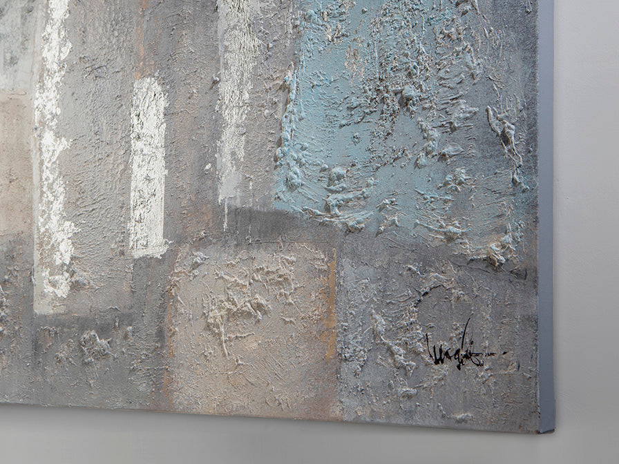 PLANOS· Pintura realizada em acrílico com aplicações em folha de PRATA, montado sobre bastidor.