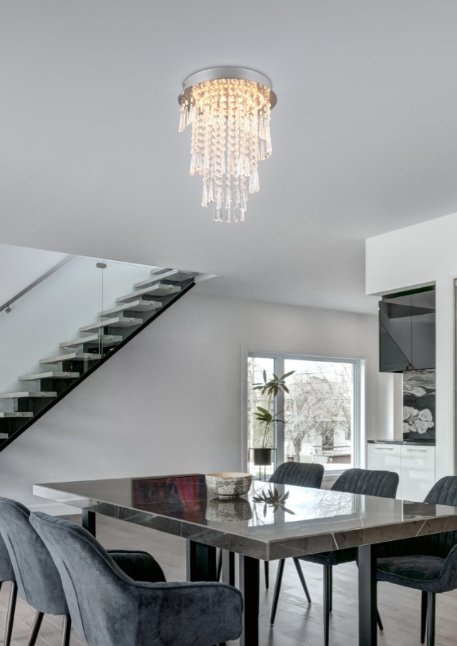 O candeeiro de teto POMP atrai a atenção de todos e torna-se uma peça central fascinante na sala de estar e de jantar com a sua abundância de brilho e glamour. Esta luminária extravagante é composta por pendentes de plástico brilhante que refractam a luz de forma impressionante, lançando sombras cativantes. O controlo remoto fornecido permite-lhe ajustar convenientemente não só a cor da luz, mas também o brilho à distância. O design do candeeiro suspenso é caracterizado pelo metal cromado, enquanto as pedras acrílicas transparentes conferem um estilo glamoroso que brilha radiante à luz. A luminária também possui a moderna tecnologia LED, que se caracteriza por uma elevada qualidade de luz e eficiência energética. Em comparação com as fontes de luz de halogéneo convencionais, é possível poupar até 80% dos custos de energia. Com as fontes de luz LED, também beneficia de uma longa vida útil e de uma baixa produção de calor, protegendo o ambiente.