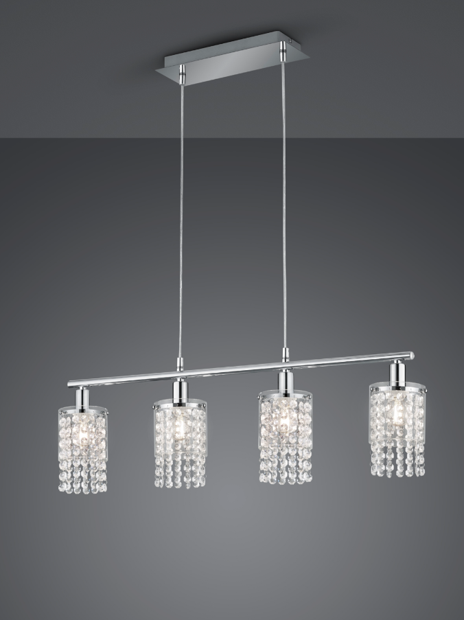 O candeeiro suspenso POSH é um destaque garantido na sua casa! O pendente em acrílico cintilante é a peça central da luz e cria um ambiente especial. A luminária fica particularmente bem em estilos de mobiliário modernos. Na sala de estar, no corredor ou por cima da mesa de jantar, seja qual for o local, o POSH proporciona aquele toque especial em todo o lado! O candeeiro suspenso de 4 luzes tem uma altura de 150 cm e uma largura de 80 cm. Graças ao esquema de cores cromado simples, o candeeiro pode ser combinado com muitos estilos de mobiliário. Para uma iluminação economizadora de energia, recomenda-se a utilização de uma lâmpada LED. Estas são uma óptima alternativa às lâmpadas de halogéneo convencionais e representam uma elevada qualidade de luz e uma poupança de energia de até 80%. Além disso, as lâmpadas LED ajudam-no a beneficiar de uma longa vida útil, de uma baixa produção de calor e, ao mesmo tempo, protegem o ambiente.
