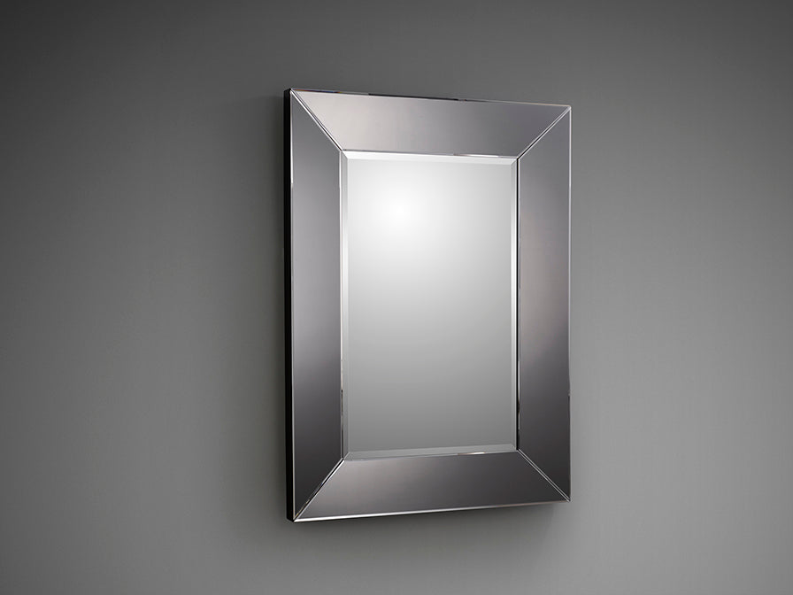 Decorative Mirror made with beveled mirror plates. Frame in smoke color. Back of MDF finished in black colour. Ready to hang in vertical or horizontal position.