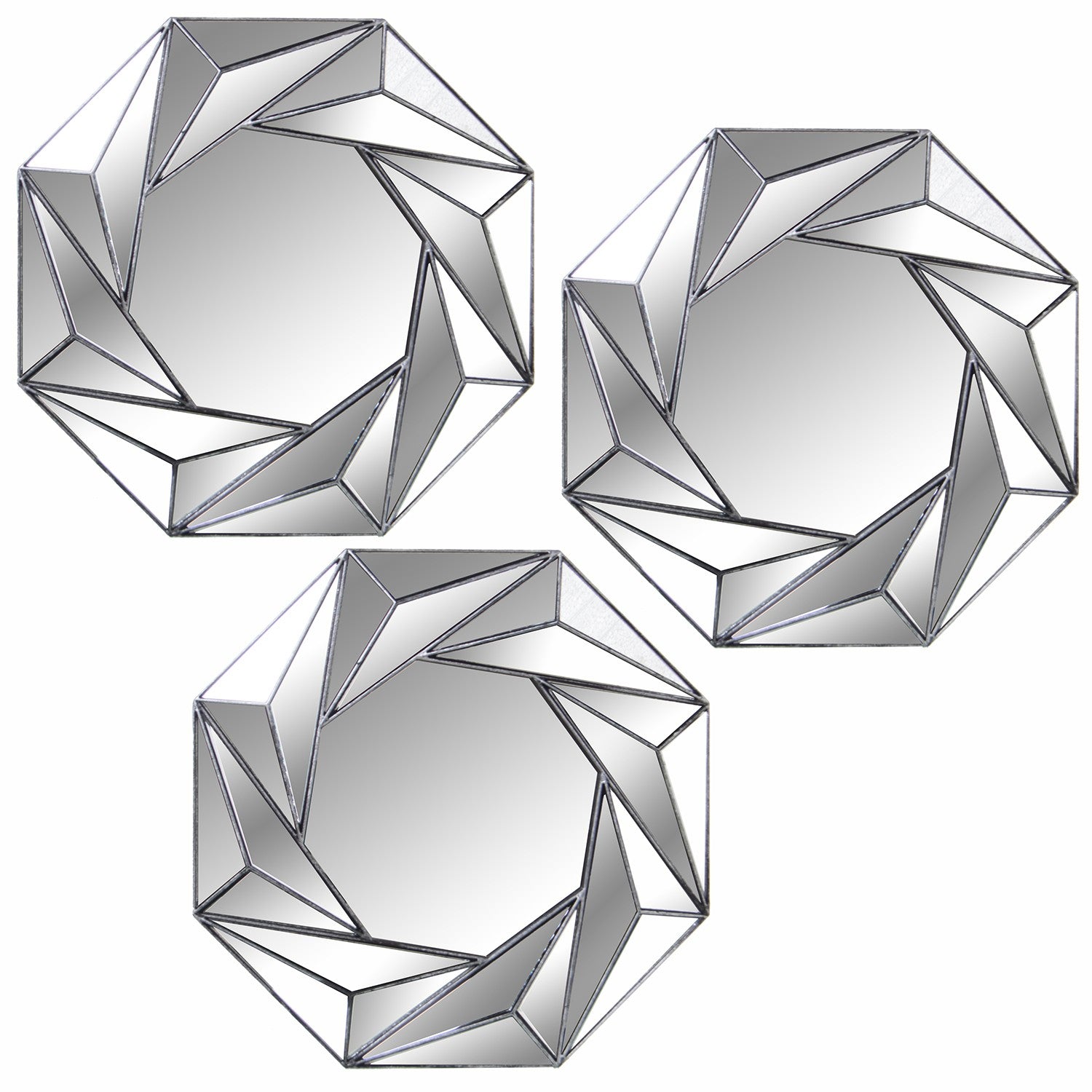 Set 3 Adornos Pared Espejo C/melamina Plateada Ø25cm