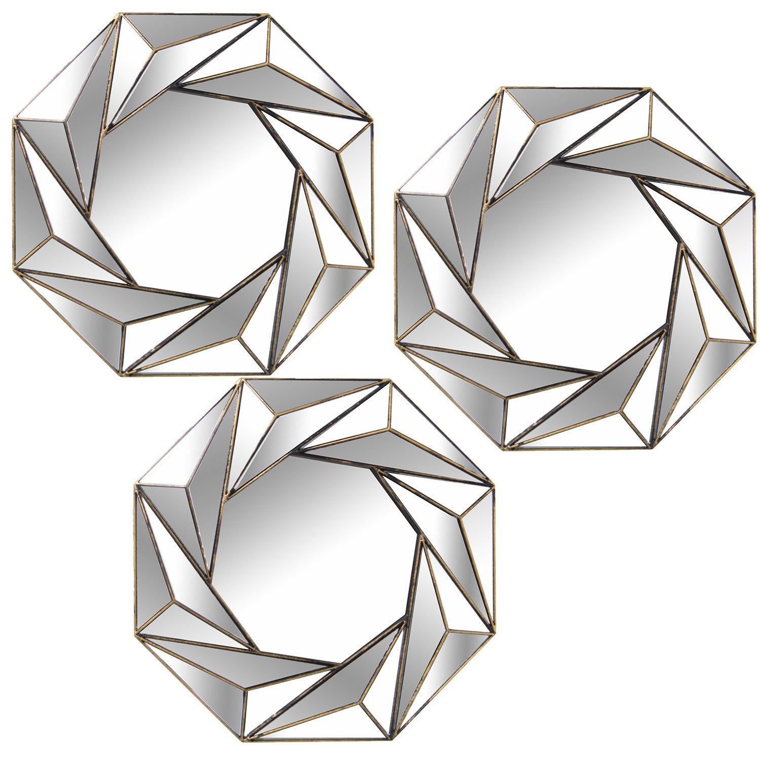 Set 3 Adornos Pared Espejo C/melamina Dorada Ø25cm
