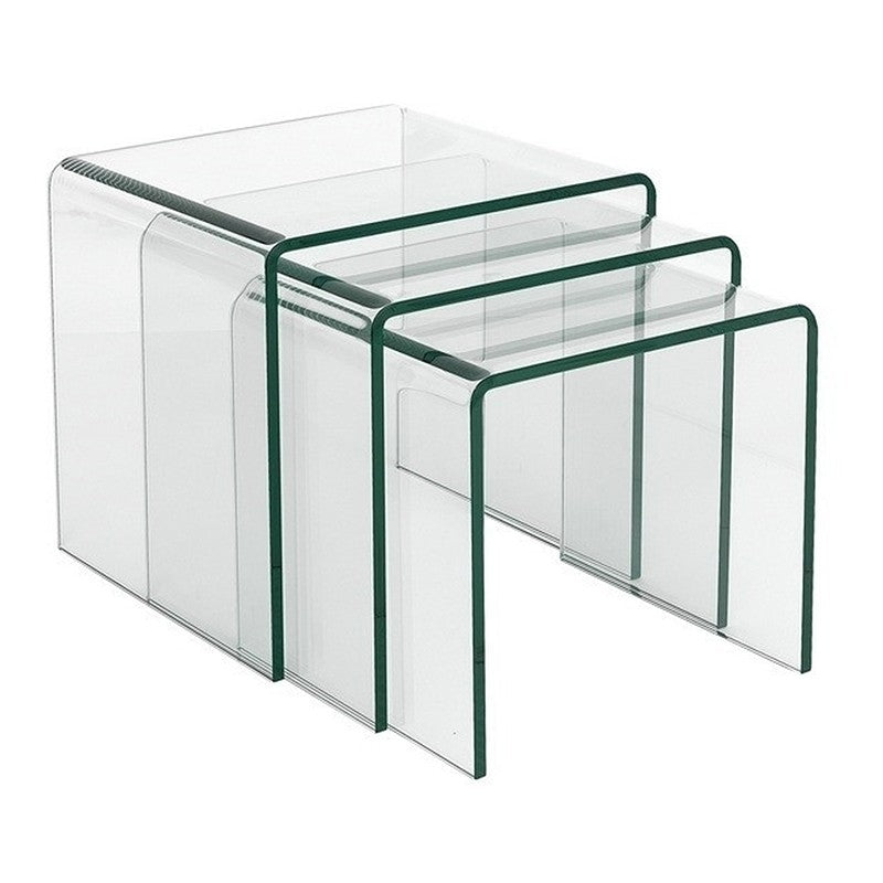 Set 3 Mesas Auxiliares Cristal 12mm Grosor 41x41x41+38x38x38+35x35x35cm