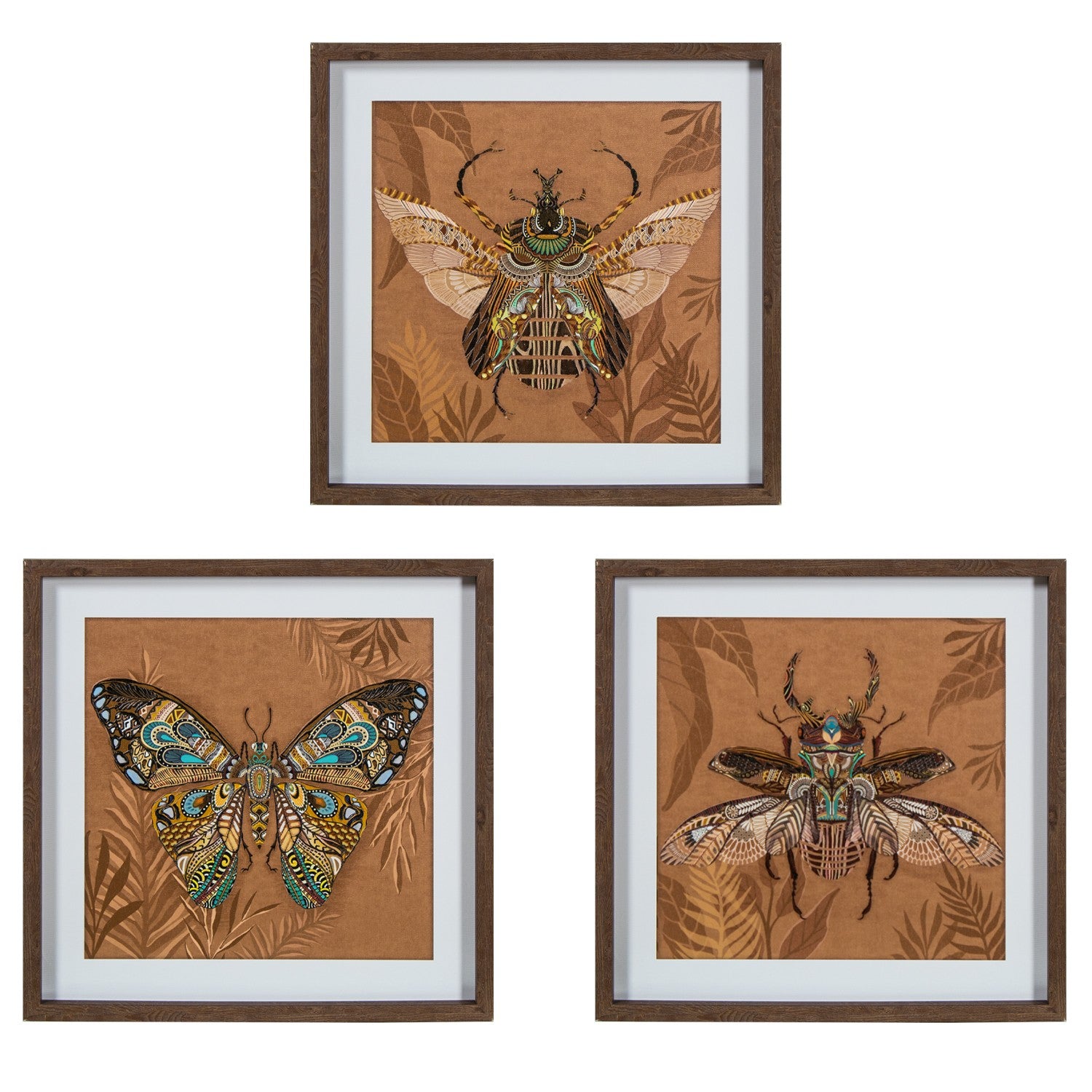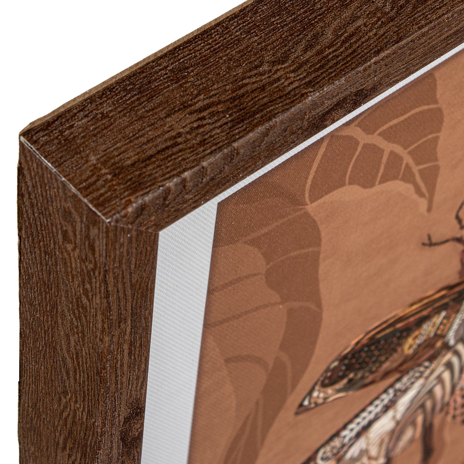 Quadro Em Tela Com Insetos E Moldura Em Madeira Natural 40x40x3cm