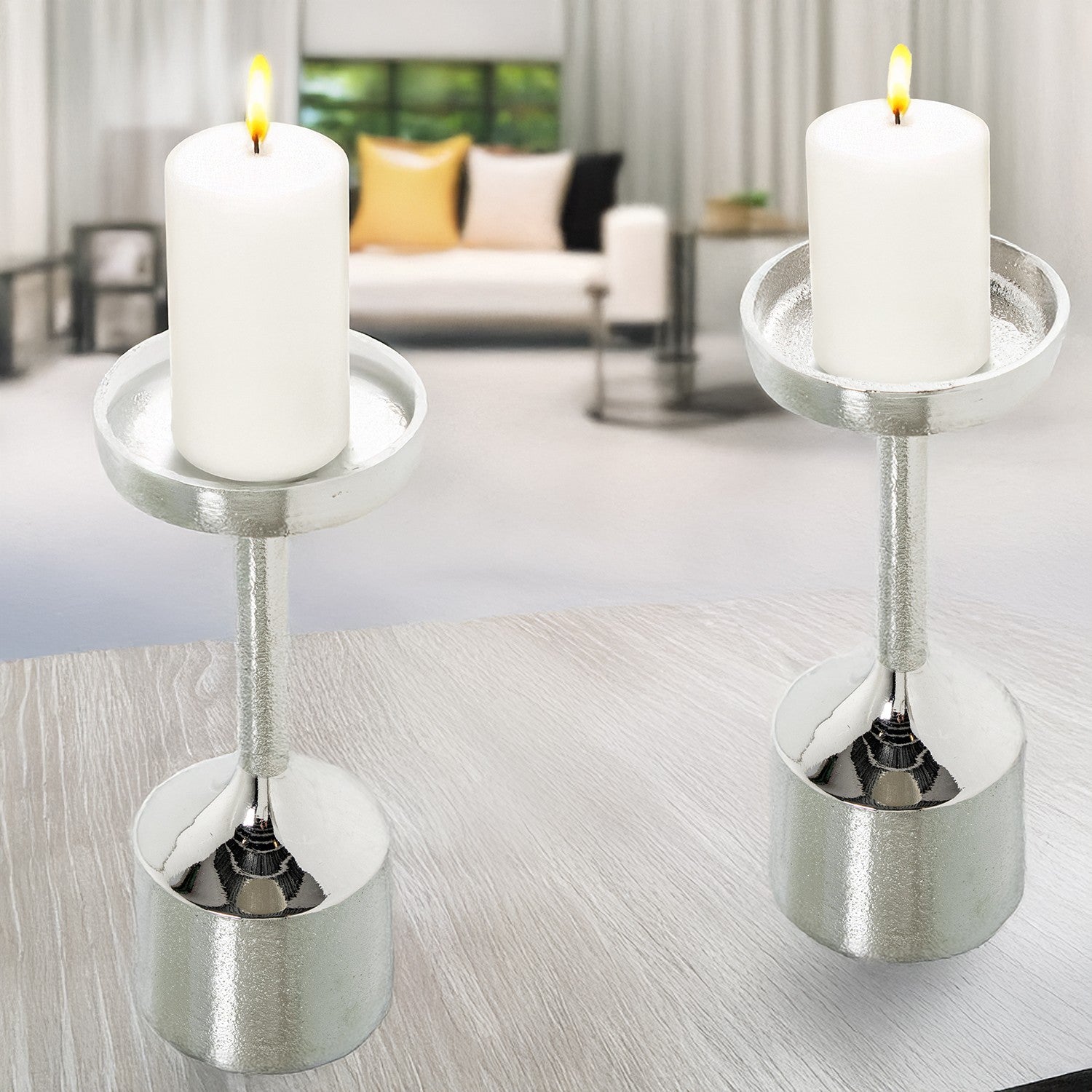 Castiçal De Alumínio Prata_ø9x21cm (para Velas Ø8cm)