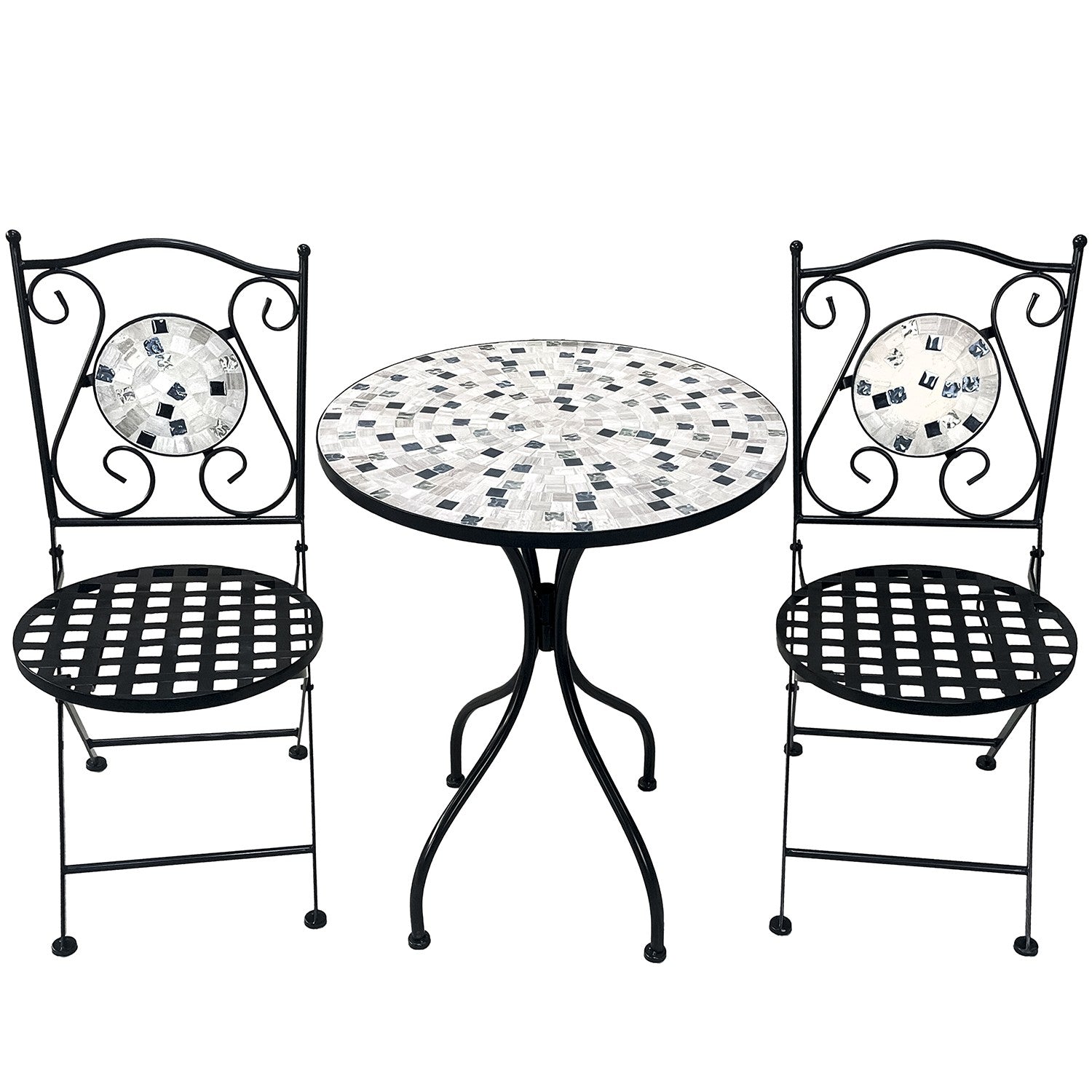 Set De 2 Cadeiras E Mesa Ferro/pedra Decorada, Mesa:ø60x71cm, Cadeira:36x42x92cm, Alt. Assento:46,5cm, Sup. Assento:ø38c
