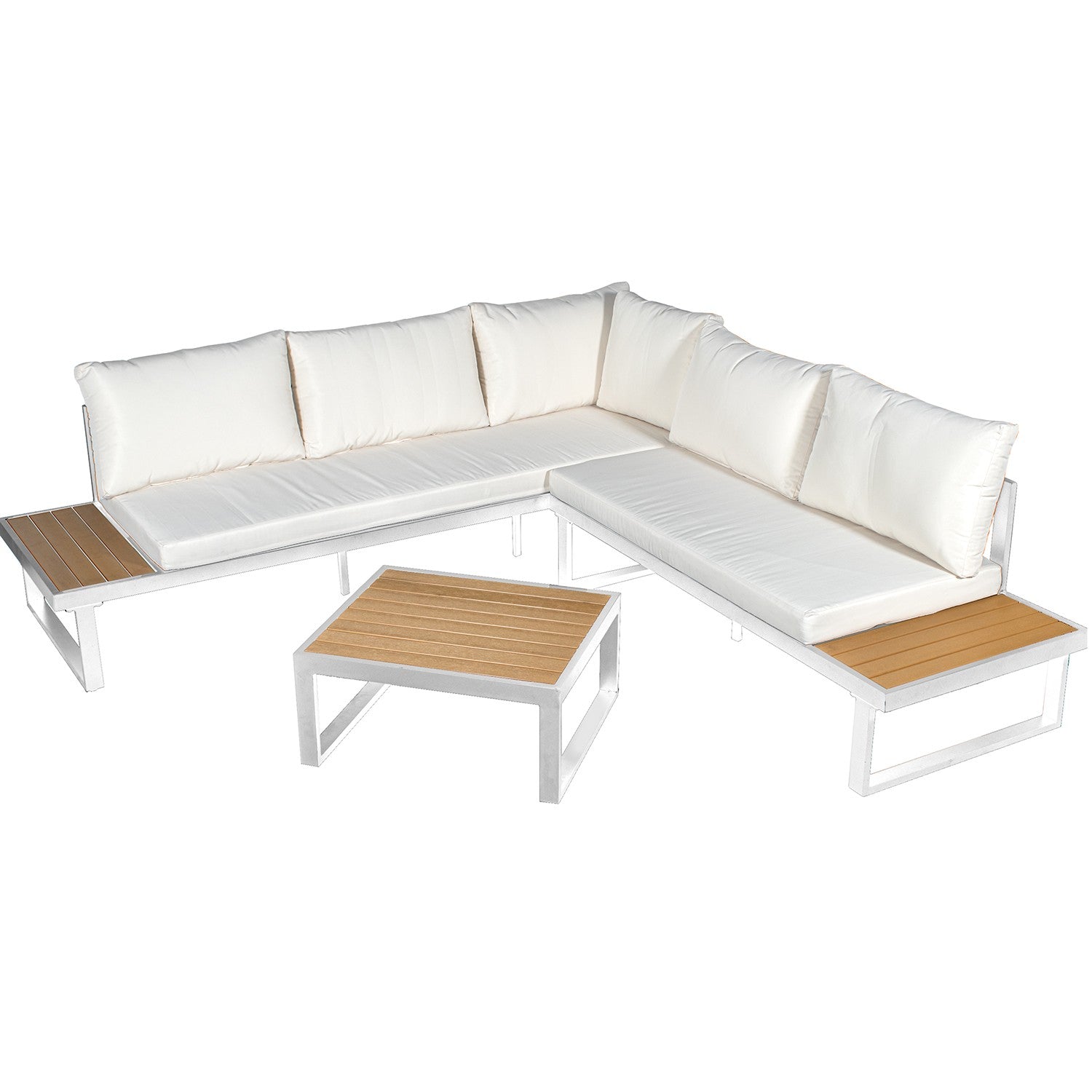 Set Sofá De Canto+mesa De Alumínio Branco Ripas De Ps, Sofás:160x68x63cm/227x69x63cm, Mesa:69x60x32cm