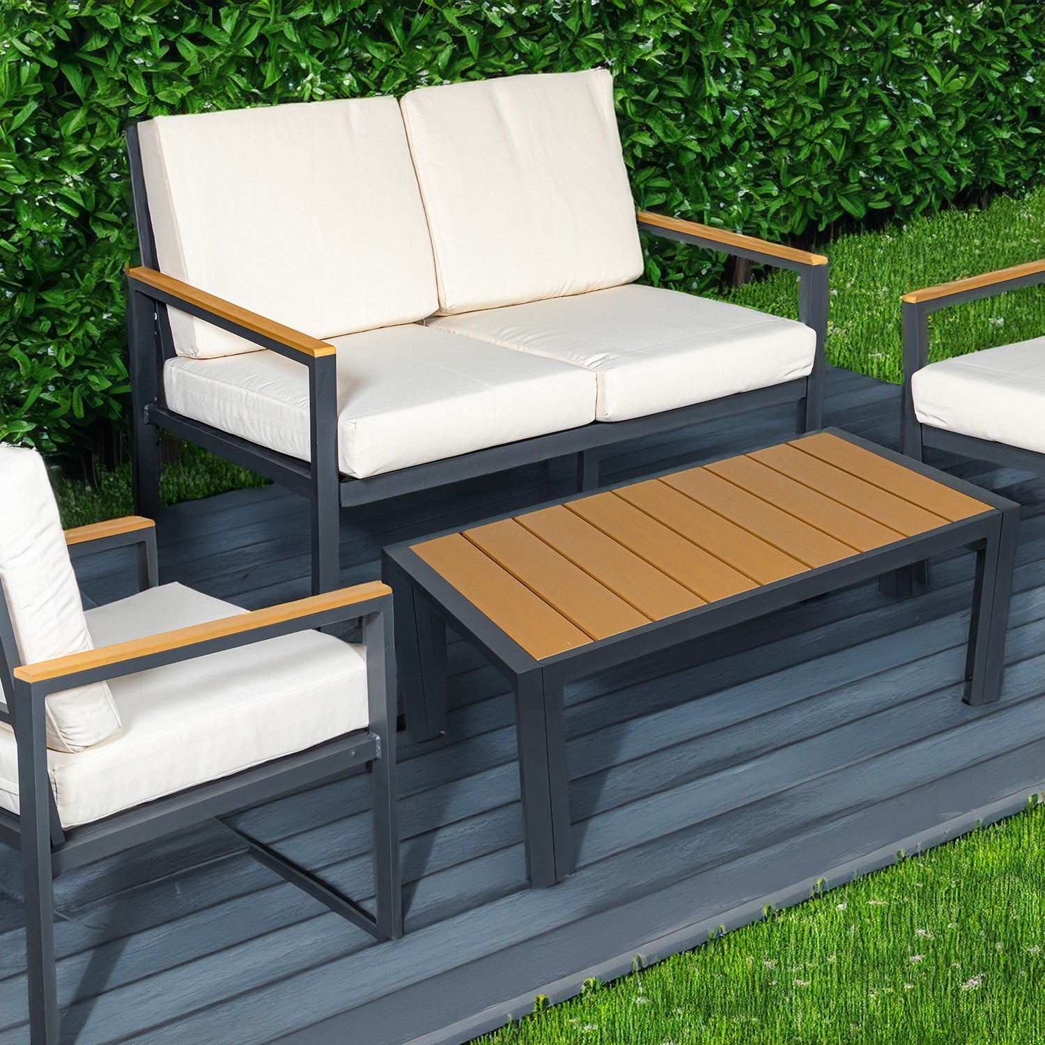Set Sofa 2 Lugares+2 Cadeiras+mesa De Alumínio E Poliéster, Sofa: 116x71x68cm, Mesa:98x54x39cm, Cadeira:61x71x68cm