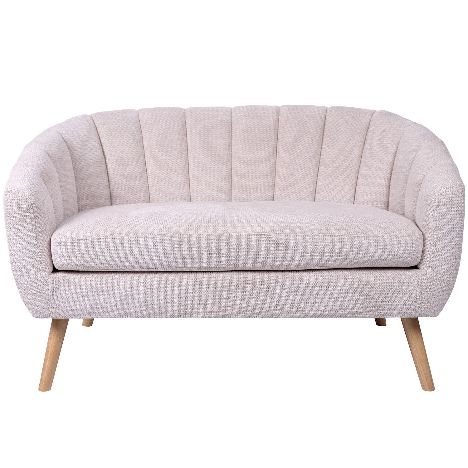 Sofá 2 Lugares Veludo Beigea Pernas De Madeira 127x73x76cm Alt. Assento:48cm