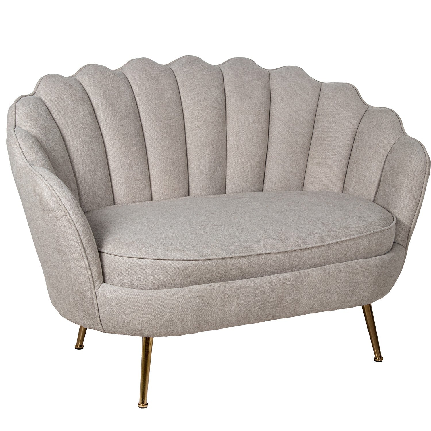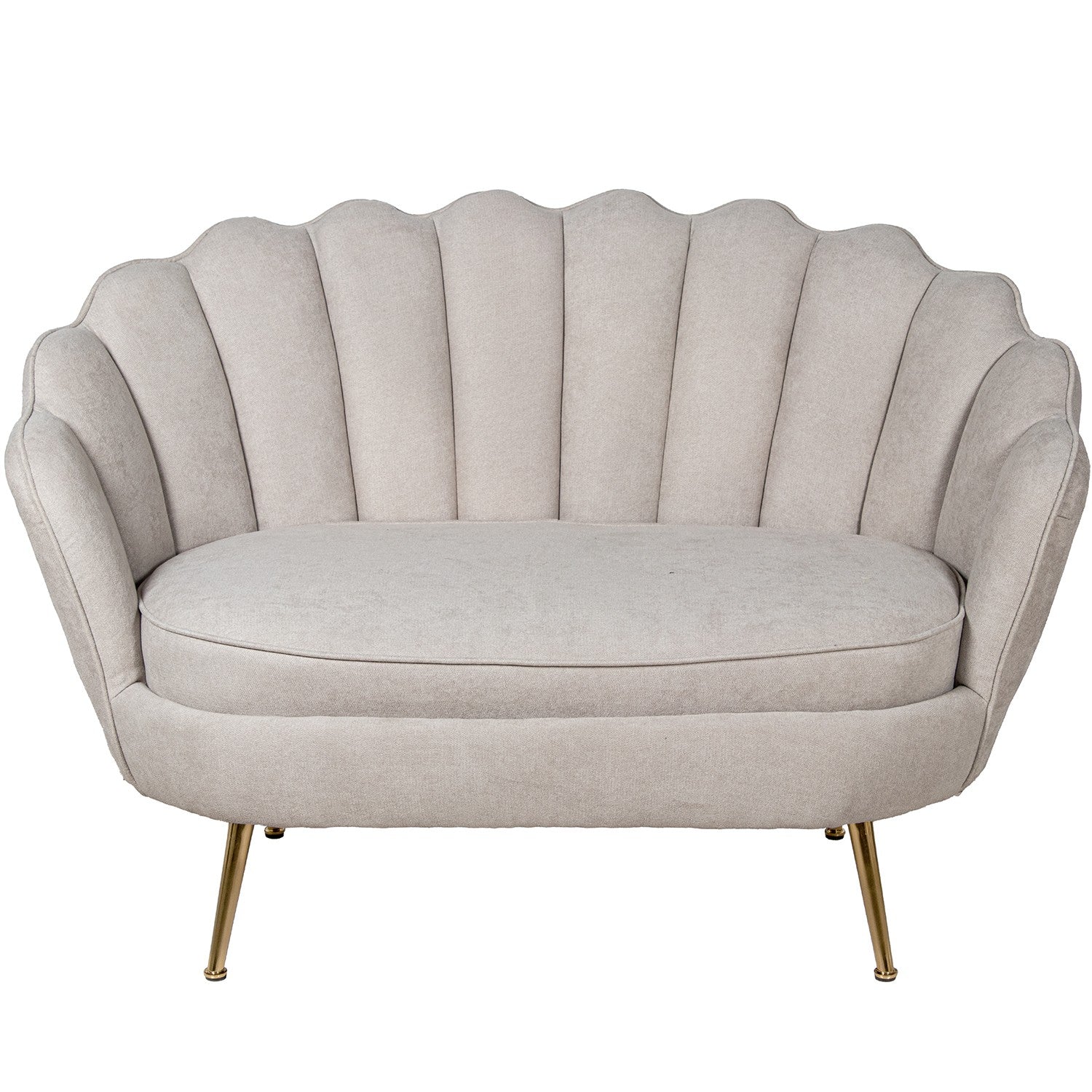 Sofá 2 Lugares Sofá Madeira Tecido Bege Pernas Metálicas Douradas 129x87x76cm Alt. Assento:46cm