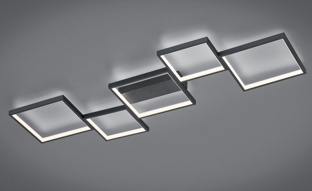 Um verdadeiro chamariz! O candeeiro de teto SORRENTO atrai a atenção de todos com o seu design invulgar e moderno e complementa qualquer espaço moderno, quer esteja ligado ou desligado. A luminária também possui um regulador de intensidade SWITCH, que lhe permite regular a luminosidade de 100% para 50% e 25% utilizando um interrutor de luz convencional. Isto permite-lhe criar o seu próprio resultado de iluminação individual. O candeeiro de teto tem uma altura de 16 cm e uma largura de 52 cm. Graças ao esquema de cores preto mate, a luz pode ser combinada com muitos estilos de mobiliário.