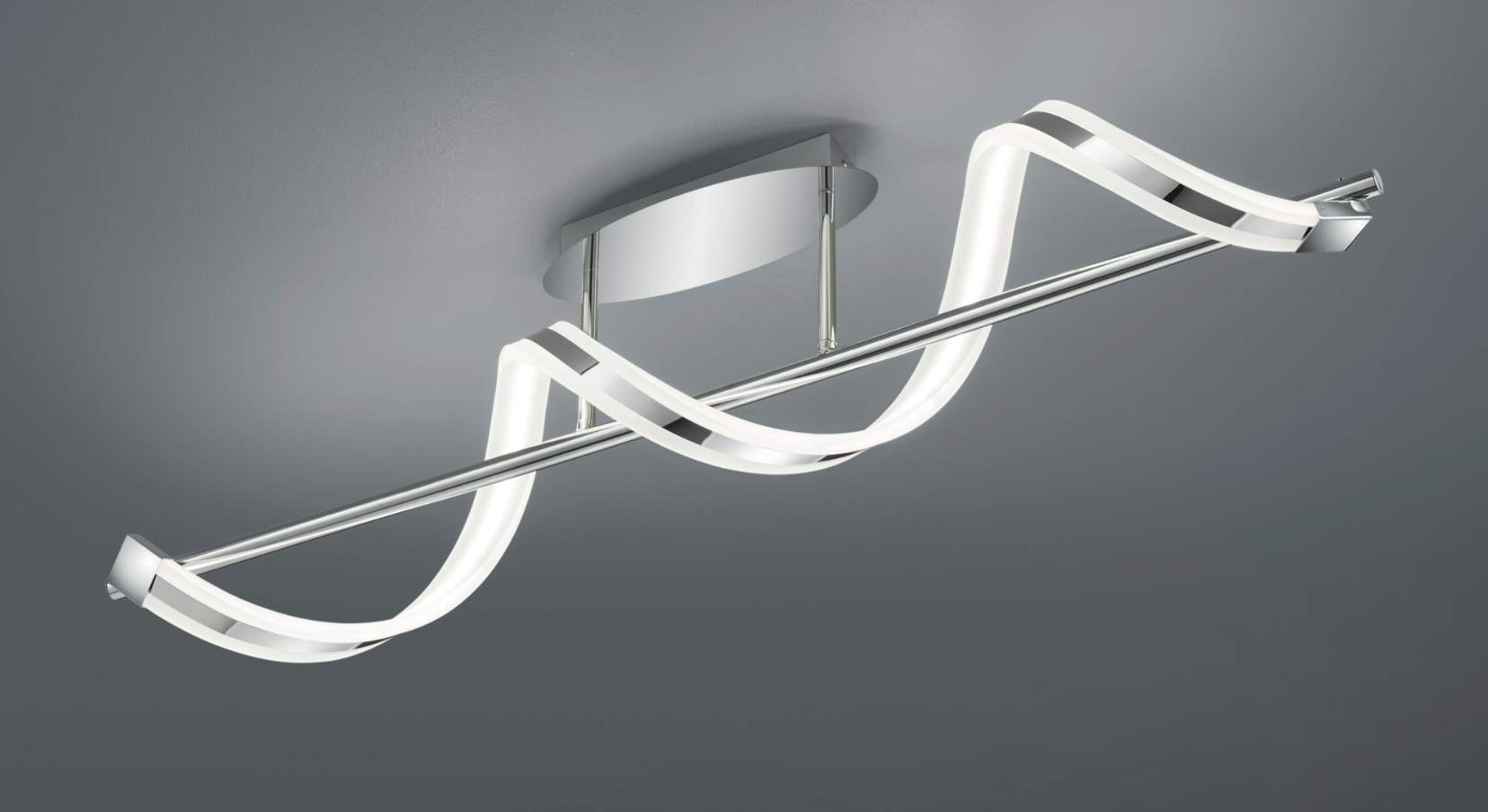 O candeeiro de teto SYDNEY LED tem um design moderno: Apresenta-se como uma faixa de metal cromado e acrílico que se enrola em torno de uma haste metálica no centro. A luz dos LEDs brancos quentes brilha em todas as direcções e não só proporciona uma iluminação clara da divisão, como também cria um ambiente acolhedor. O aspeto cromado harmoniza-se com vários estilos de mobiliário contemporâneo. A luminária tem uma largura de 103 cm. A mistura de superfície cromada e acrílica cria contrastes excitantes. Além disso, a luminária possui a moderna tecnologia LED, que se caracteriza por uma elevada qualidade de luz e eficiência energética. Em comparação com as lâmpadas de halogéneo convencionais, é possível poupar até 80% dos custos de energia. Além disso, as fontes de luz LED têm uma longa vida útil, produzem menos calor e protegem o ambiente.