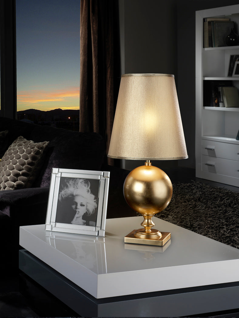 Candeeiro de secretária de 1 luz em metal, acabamento DOURADO.
