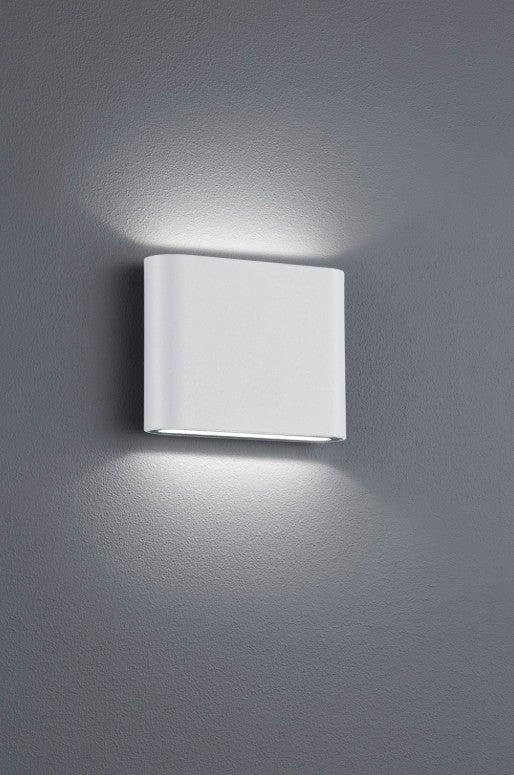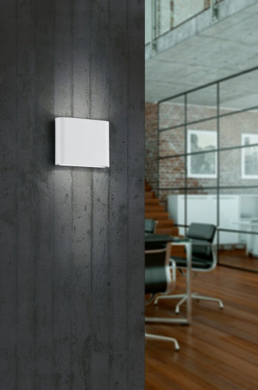 O moderno candeeiro de parede exterior THAMES II impressiona com belos efeitos de iluminação e cria grandes realces em áreas exteriores graças aos feixes de luz para cima e para baixo. No interior, é particularmente eficaz como iluminação contemporânea para corredores e átrios ou como um bonito candeeiro de sala de estar de design. Independentemente da finalidade para a qual necessita do seu aplique, quer esteja à procura de apliques LED para exterior para iluminação de fachadas na área de entrada, apliques modernos para pátios, apliques direccionais para caminhos ou apliques para interior, como candeeiros de corredor ou candeeiros de sala, o aplique cumpre todos estes requisitos em todos os aspectos. O acabamento branco mate é simples mas elegante. É, por isso, muito versátil.