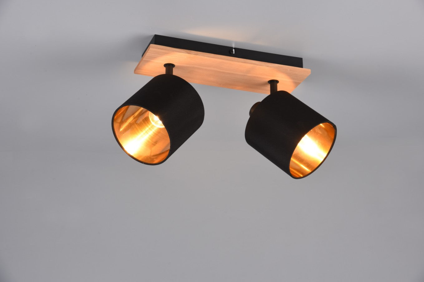 Os spots da série TOMMY representam uma luz caseira, uma vez que os tons têxteis aumentam o fator de conforto e evocam um ambiente acolhedor. Ao mesmo tempo, as formas claras evocam um estilo moderno e simples que pode ser utilizado e combinado de muitas formas diferentes. O spot de duas lâmpadas pode ser utilizado como luz suplementar ou de orientação, bem como em pequenas salas de estar. As cabeças giratórias podem ser alinhadas de forma direccionada para definir deliberadamente o cenário para áreas individuais. O candeeiro é feito de metal preto mate e é complementado por um abajur de tecido na moderna combinação de cores preto e dourado. A combinação adicional com a madeira cria um toque de iluminação elegante e dá aos espaços de vida um efeito de bem-estar extraordinário. Para uma iluminação economizadora de energia, recomenda-se a utilização de uma lâmpada LED. Estas são uma óptima alternativa às lâmpadas de halogéneo convencionais e representam uma elevada qualidade de luz e uma poupança de energia de até 80%. Além disso, as lâmpadas LED ajudam-no a beneficiar de uma longa vida útil, de uma baixa produção de calor e, ao mesmo tempo, protegem o ambiente.