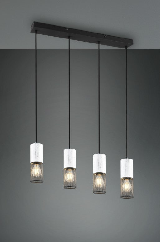 A mistura moderna de metal e madeira tem um aspeto intemporal e está absolutamente na moda. A combinação com materiais naturais tornou-se parte integrante dos espaços modernos e cria também um ambiente acolhedor. A luminária suspensa TOSH é, por isso, a escolha ideal para o ambiente de iluminação correto e para aquele toque especial. Colocado por cima de uma mesa de jantar ou na sala de estar, o candeeiro suspenso é particularmente eficaz. O metal preto, juntamente com os elementos de madeira em branco antigo, pode ser encontrado em estilos de mobiliário modernos e minimalistas.