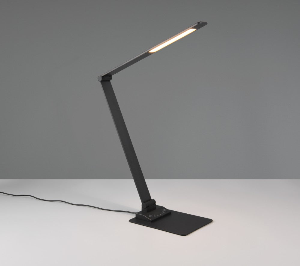 Um trabalho eficiente depende, em grande medida, de um ambiente de iluminação ideal. Com o seu regulador de intensidade SWITCH integrado, o candeeiro de mesa TRAVIS oferece uma solução que é fácil para os olhos, uma vez que a luminosidade pode ser ajustada em três níveis (100%, 50% e 25%), conforme necessário. A função tátil da luminária não só permite ligar e desligar a luz rapidamente, como também permite ajustar continuamente a cor da luz. As práticas articulações na luminária permitem que a luz seja direccionada individualmente, tornando a luminária a escolha ideal para qualquer área de trabalho. A opção de carregar smartphones ou outros dispositivos através da ligação USB ou USB-C na luminária completa-a de forma inteligente. O design simples em preto mate integra-se perfeitamente em qualquer espaço de trabalho. A luminária também possui a moderna tecnologia LED, que se caracteriza por uma elevada qualidade de luz e eficiência energética. Em comparação com as fontes de luz de halogéneo convencionais, é possível poupar até 80% dos custos de energia. As fontes de luz LED também têm uma longa vida útil, produzem menos calor e protegem o ambiente.