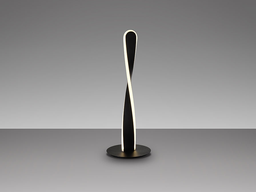 Candeeiro de secretária realizado em metal acabamento preto mate. Difusor de silicone opalino. 12 W, 850 lm, 3000 k