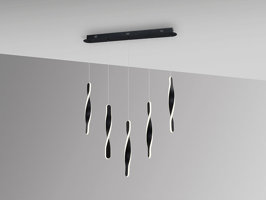 Candeeiro de 5 luzes realizado em metal acabamento preto mate. Difusor de silicone opalino. 50 W, 3400 lm, 3000 k REGULÁVEL.