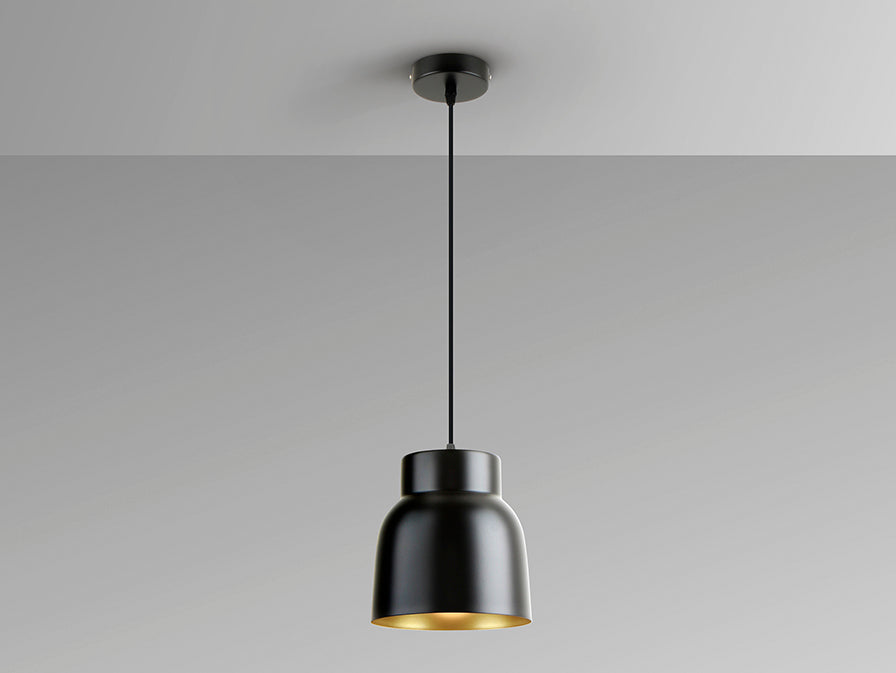 Candeeiro de 1 luz realizado em metal com acabamento preto mate e dourado. Regulável em altura. 1 E27